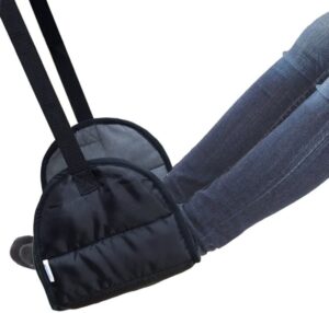 Questo poggiapiedi è indispensabile soprattutto se devi affrontare un lungo viaggio. E’ molto facile da usare poichè basta appendere questa pedana alla staffa del tavolino e poggiarci su i piedi.