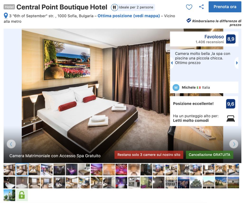 Situato nel vero cuore di Sofia, questo hotel ha un ottimo punteggio per la posizione: 9,6!